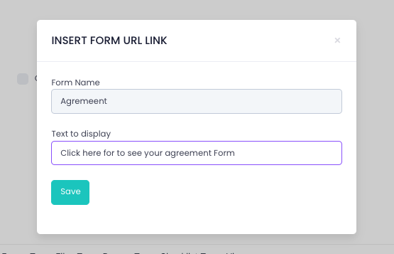 – From the Forms Tag Dropdown, select “Form Link”. Customise the display text for the link.