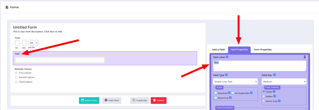 In the Form Properties, you can customise various settings to fit your needs, such as: