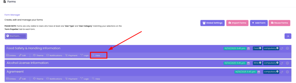 You will be redirected to the Form Manager page and your form will be listed there. Click the “View” icon to see the final form result.