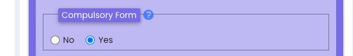 • Compulsory Form: This setting ensures that the system labels the form as compulsory for the user. However, it does not enforce completion; it only appears as a label in the form or checklist table.