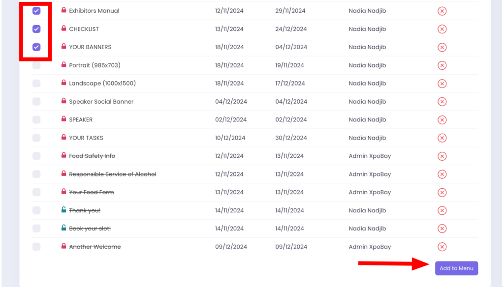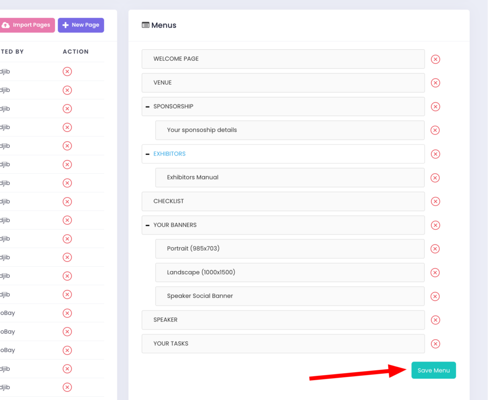 To organise your pages, you need to add them to the Menu. This allows you to structure your pages into a clear hierarchy, improving navigation for your participants.