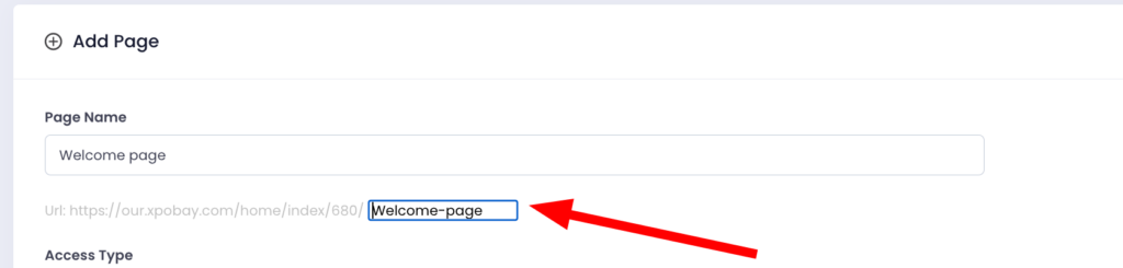 If you change the page name and wish to update the URL, click the generated portion (e.g., “welcome-page”) and edit it accordingly.