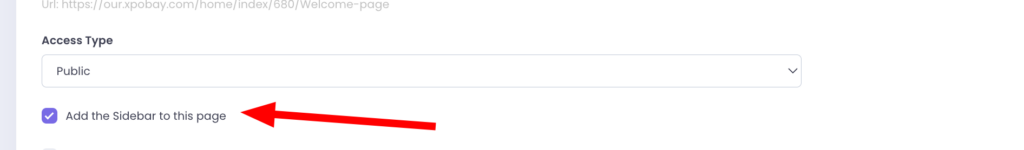 Tick the checkbox in the page editor to include a sidebar on your page. For more information about the sidebar, refer to this article.