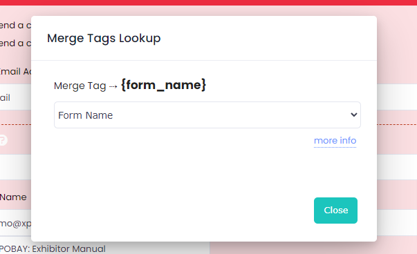 2. A window will display all the merge tags associated with the selected form.