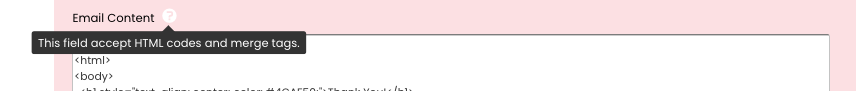 Merge tags are dynamic placeholders that automatically populate with data provided by the user in the form. They make it easy to personalise email content with details like the user’s name, email, or form responses.