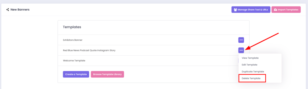• Select Delete Template from the dropdown menu.