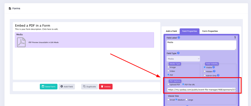 Exhibitors or sponsors will be able to view the file on your form, as shown below: