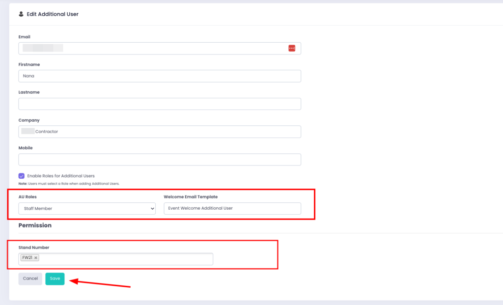For some events, assigning additional users to specific roles can streamline event management, particularly for exhibitors who require support from contractors or team members.