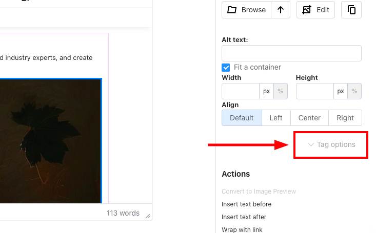 To start adding styles, simply click ‘Tag Options‘ on the right-hand panel of the Page Editor.