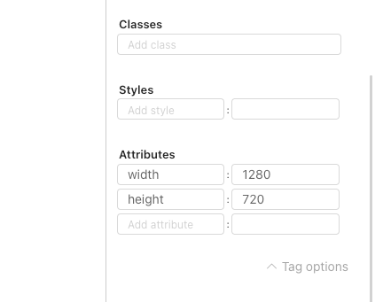 Attributes Field – Use this for adding extra HTML attributes when needed (e.g. data attributes or aria-label).