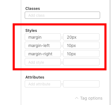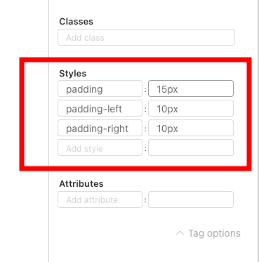 When building or editing a page, applying custom styles helps improve layout, spacing, and overall appearance. The Tag Options panel in the Page Editor lets you manually enter styles for spacing, alignment, formatting, and more.