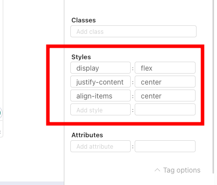 • ✔ Styles – This is where you enter custom styles using CSS key-value pairs (e.g. margin: 20px).
