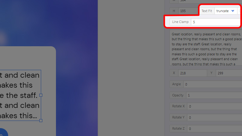 • Use this in conjunction with the Line Clamp setting to limit your text to a specific number of lines before truncation occurs.