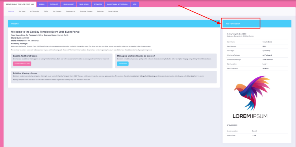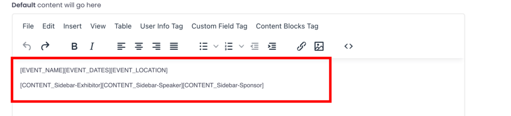 Using content blocks in the Sidebar allows you to display personalised information for different users, such as exhibitors, speakers, or sponsors. Follow these steps to set it up: